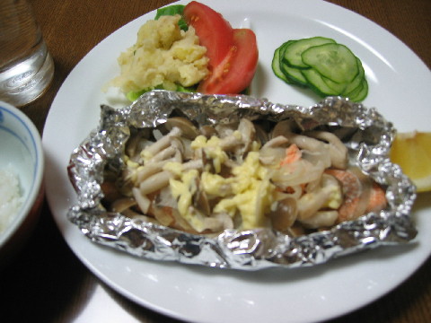 ◆鮭のホイル焼き(玉ねぎ・しめじ・マヨネーズ・レモン)