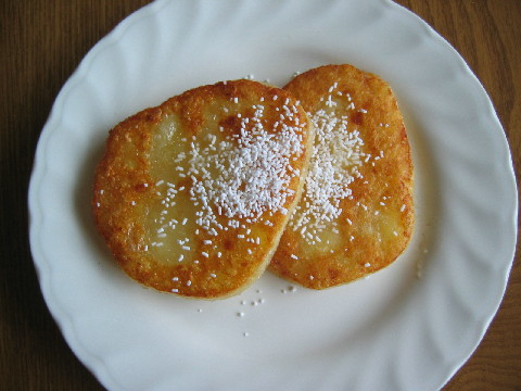 お砂糖をかけて熱々のうちにいただきます。昔ながらの素朴な味が好きです。