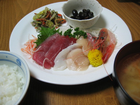 ◆お刺身 ◆キャベツと人参の胡麻和え ◆黒豆