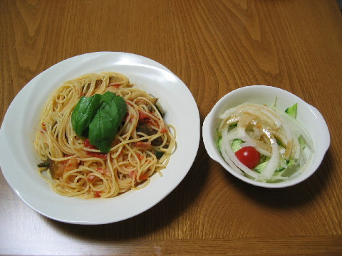 副菜が緑だらけの今夜の晩ご飯です。