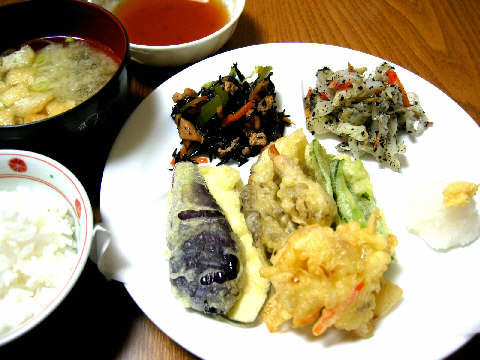 ◆野菜の天ぷら(茄子・ピーマン・舞茸・玉ねぎと人参のかき揚)
