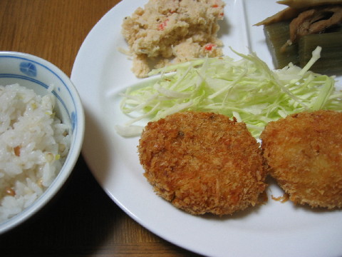 ◆かぼちゃとじゃがいものコロッケとキャベツ