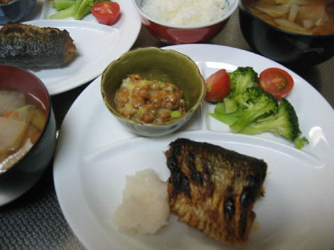 にしんの塩焼き 納豆 サラダ(ブロッコリー・プチトマト)