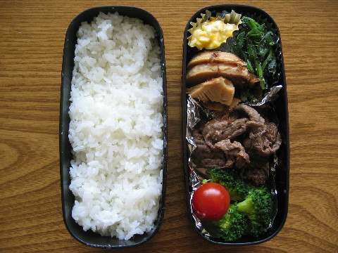 焼肉(牛もも肉を玉ねぎのおろしたも・とにんにく・しょう油・酒・みりんで味付けした)