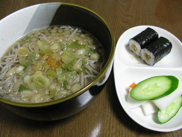 蕎麦+納豆巻き+かぶときゅうりの浅漬け