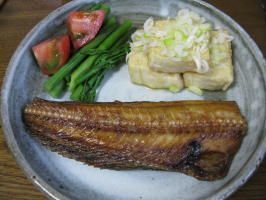 焼き魚 茹でアスパラ 揚げない揚げだし豆腐