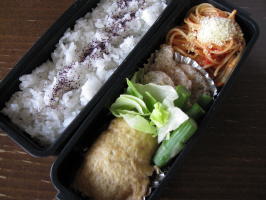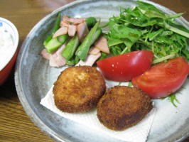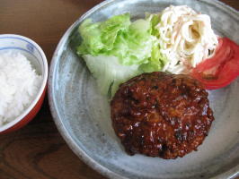 デパートの地下でハンバーグとスパサラを買ってきました。