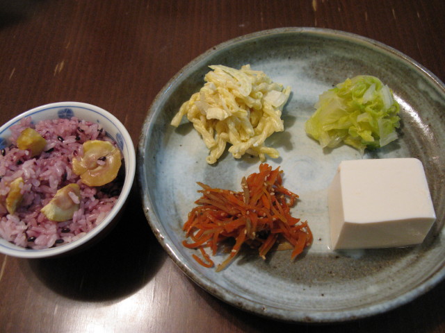 ご飯は黒米入り栗ご飯。
