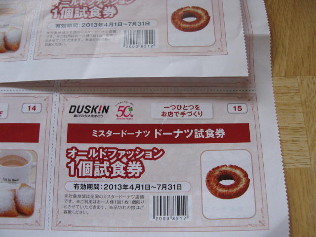 オールドファッション1個試食券が付いていました!