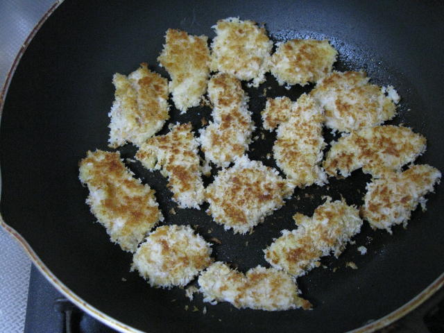 パン粉がなかったので朝焼いたパンをミキサーでひきました。