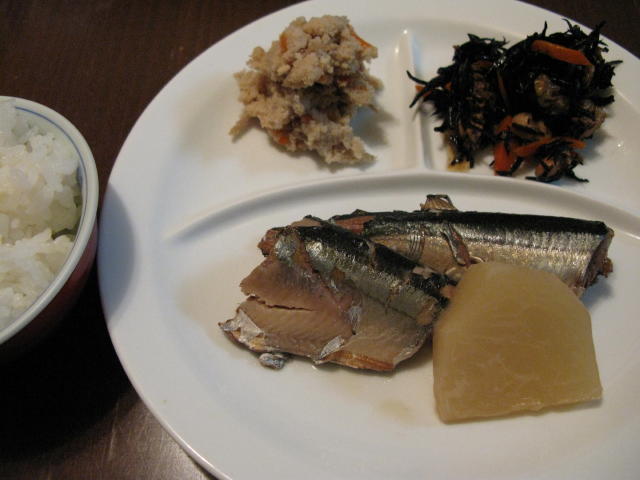 秋刀魚の辛煮は前日に、ひじきの煮物は今朝作りました。