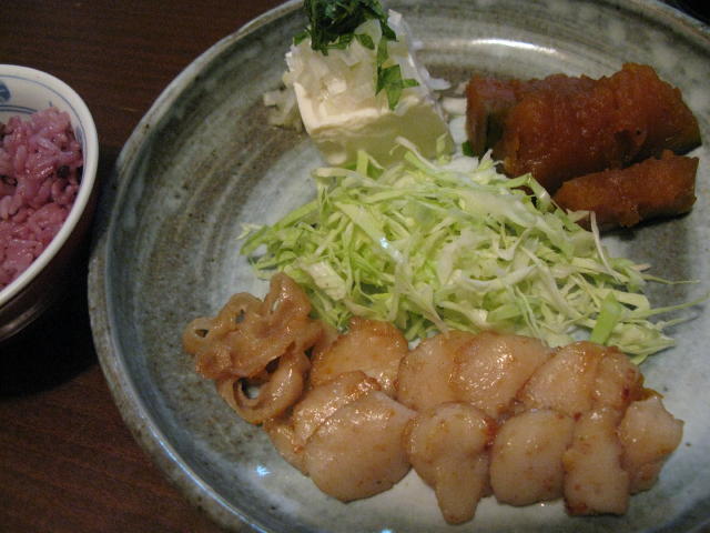 他にはカボチャの甘煮、冷奴、キャベツの千切り。