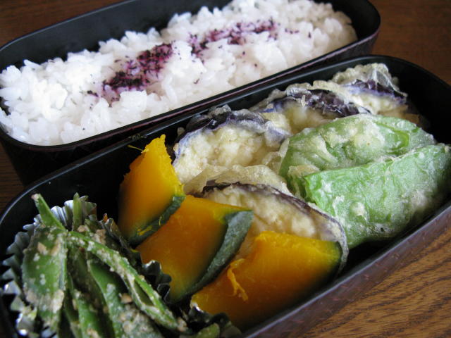 他は蒸しかぼちゃにいんげんの胡麻和え。