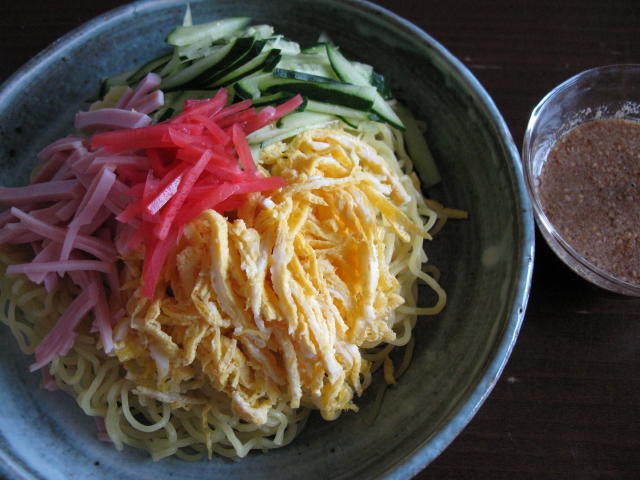 タレはめんつゆ+酢+ゴマ油+砂糖+ゴマを合わせたもの。