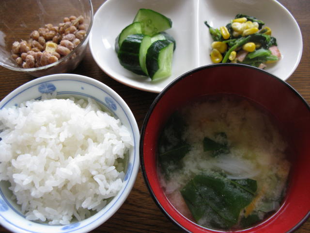 暗くて見えないのですが、お味噌汁には小松菜がたっぷり入っています。