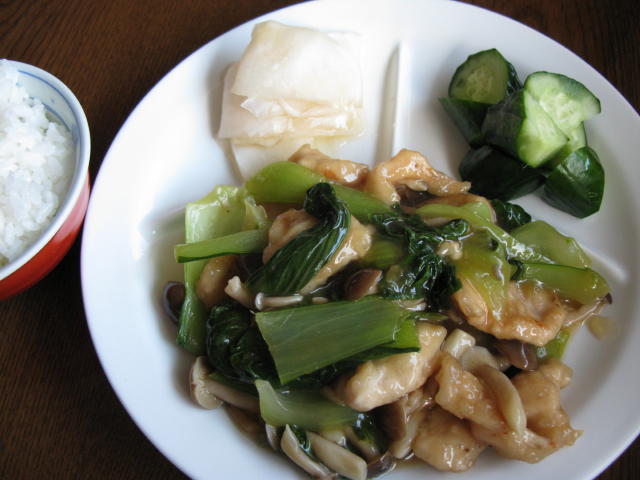 青梗菜・しめじ・鶏肉の中華風あんかけです。