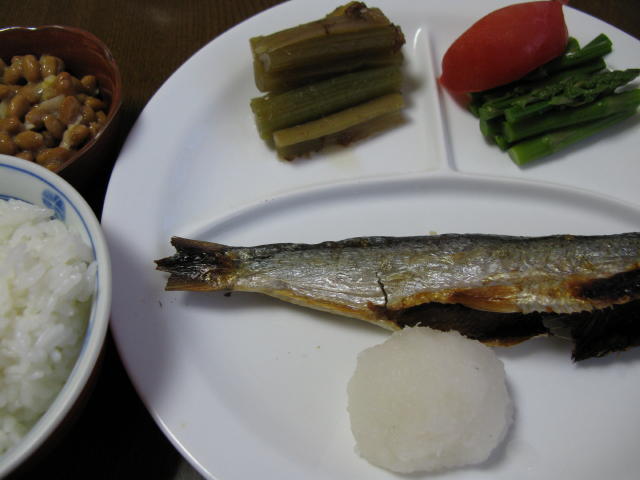 ◆ニシン&大根おろし トマト アスパラ ふきの煮物 納豆 白米