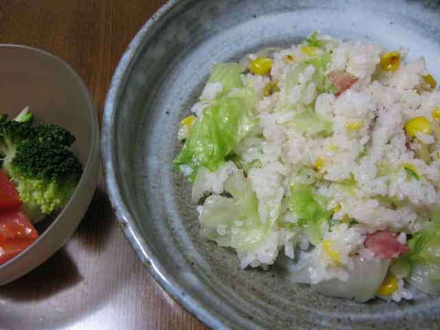 今日は簡単にレタス炒飯です。