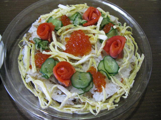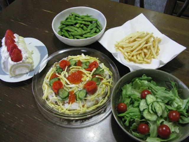 娘がケーキとちらし寿司の飾りを手伝ってくれました^^