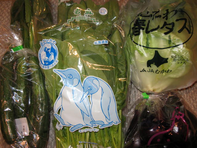 北海道産のレタス・小松菜・ほうれん草・チンゲン菜に茄子・きゅうり。