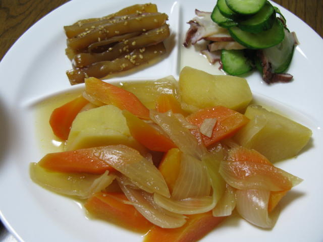 ◆肉じゃが きゅうりとたこの酢の者 こんにゃくの入り煮