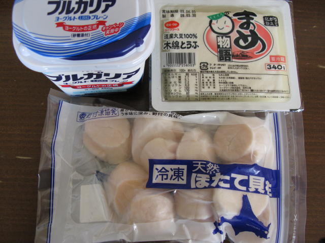 ほたて(北海道産) 豆腐(北海道大豆) ヨーグルト