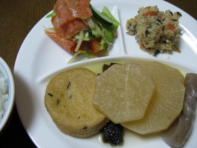 ◆大根とがんもの煮物 五目おから サーモンのマリネ 白米