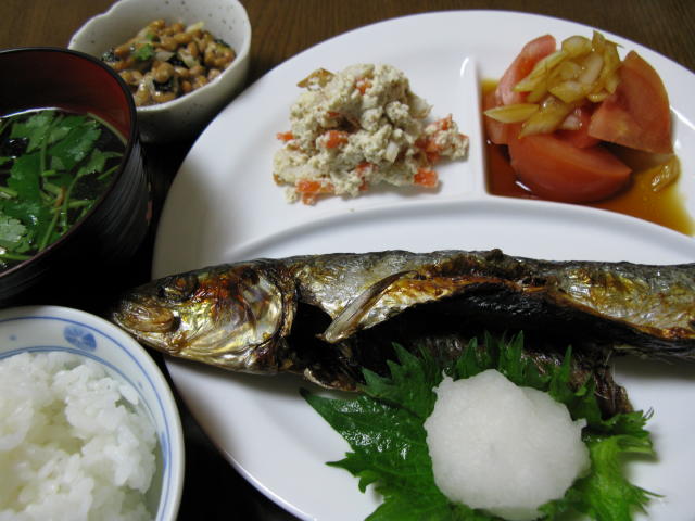◆ニシン 大根おろし シソ トマトと玉ねぎのサラダ 人参とちくわの白和え