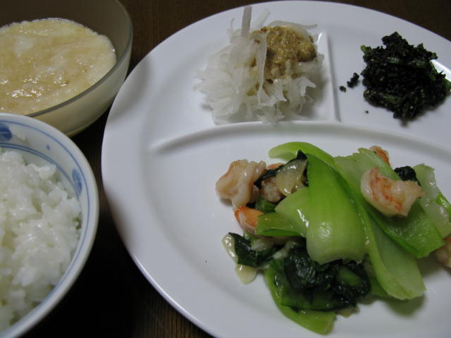 海老と青梗菜の塩炒めです。