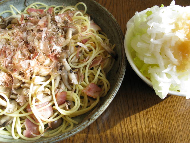 ◆きのことベーコンのパスタ 大根&レタスサラダ