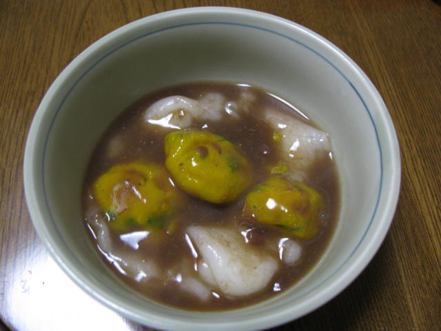 おやつにカボチャと白玉団子をいただきました。