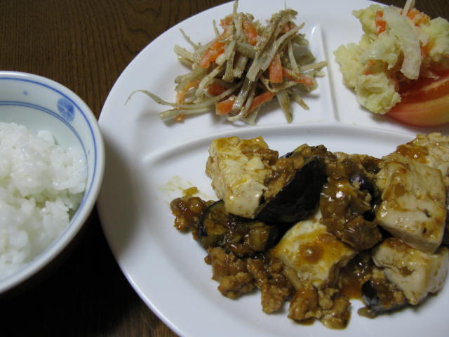 ◆マーボー茄子豆腐 ごぼうサラダ ポテトサラダ トマト 白米