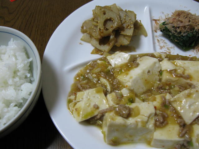 ◆マーボー豆腐 レンコンのきんぴら 小松菜のおひたし 白米