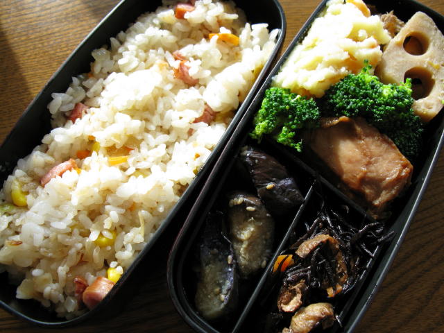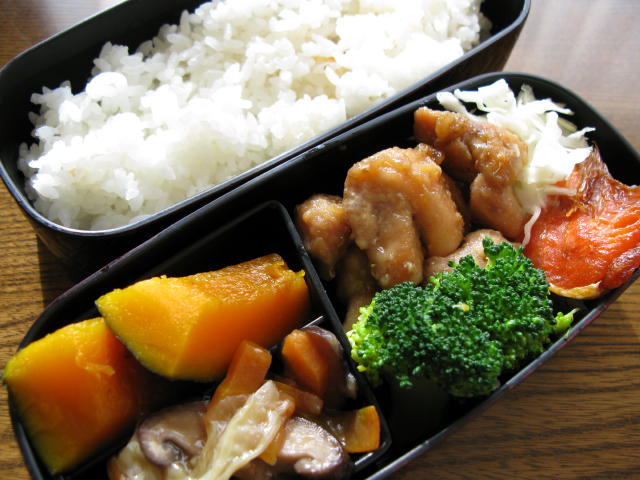 ◆鶏肉の照焼き キャベツの千切り 紅鮭 ブロッコリー かぼちゃの煮物 白米