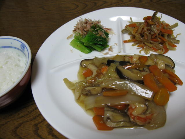 ◆野菜のあんかけ きんぴらごぼう 小松菜のおひたし 白米