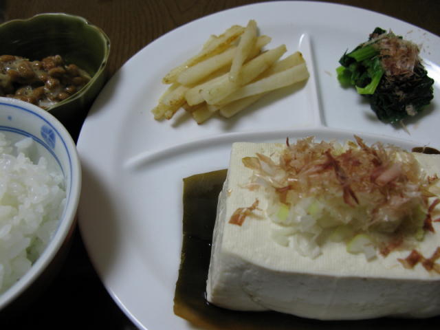 ◆煮奴 小松菜のおひたし 長芋の炒め物 納豆 白米