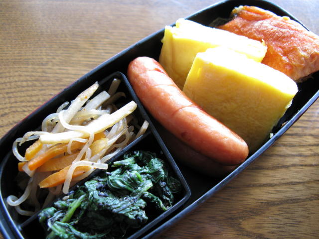 ◆紅鮭 玉子焼き ウインナー きんぴらごぼう ホウレン草のおひたし 白米