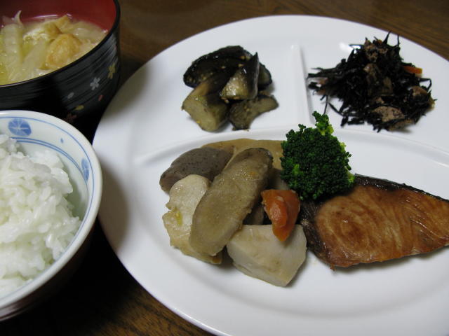 ◆ブリの照焼き 根菜の煮物 ブロッコリー 五目ひじき 茄子の味噌炒め