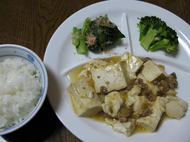 ◆マーボー豆腐 ブロッコリー 小松菜のおひたし 白米