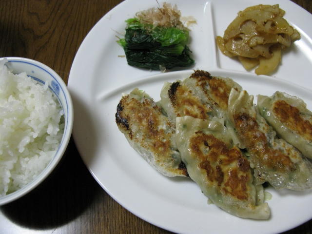 ◆野菜たっぷり餃子 レンコンのきんぴら 小松菜のおひたし 白米