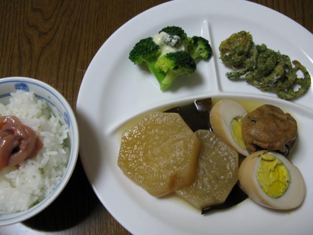 ◆おでん れんこんの青のり焼き ブロッコリー 白米 いかの塩辛