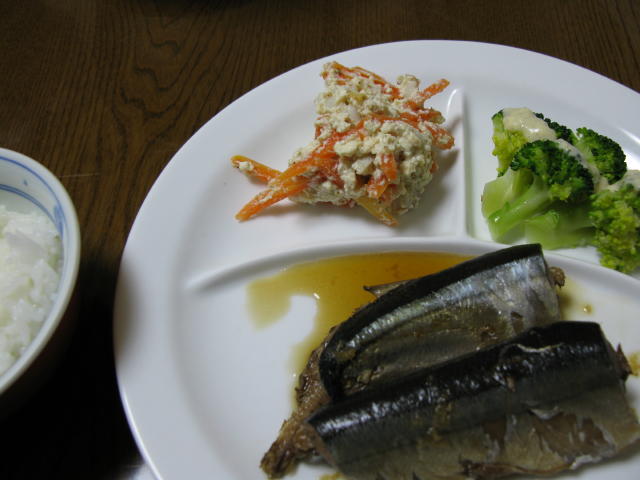 ◆秋刀魚の煮付け 人参とちくわの白和え ブロッコリー 白米