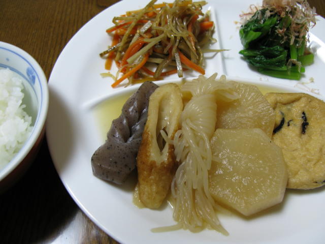 ◆おでん きんぴらごぼう 小松菜のおひたし 白米