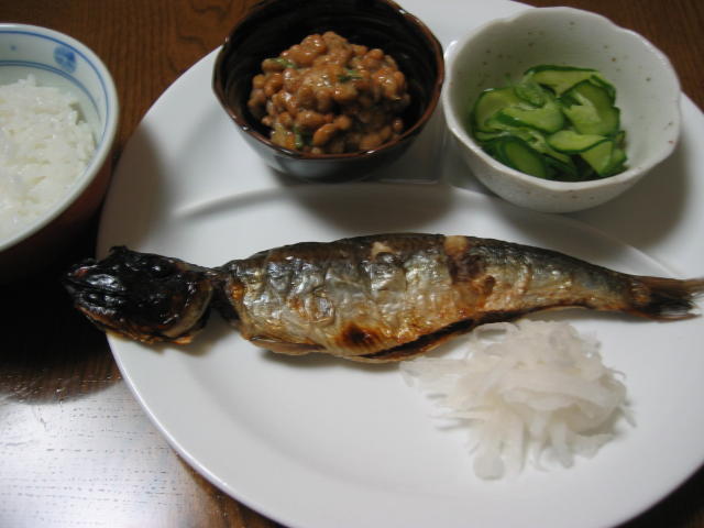 ◆にしんの塩焼き 大根おろし きゅうりの酢の物 納豆(シソ入り) 白米
