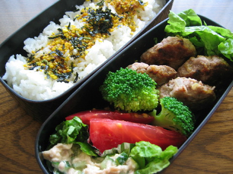 ◆ハンバーグ サンチュ シーチキンときゅうりのサラダ ブロッコリー トマト