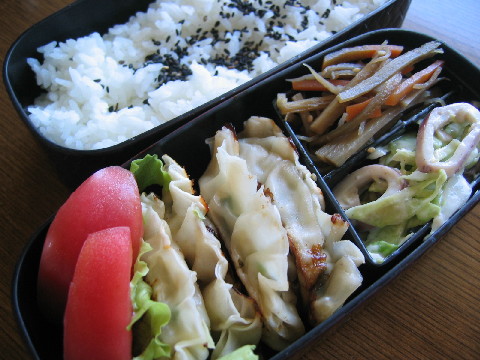 ◆餃子 レタス トマト きんぴらごぼう(冷凍しておいたもの) イカとキャベツのサラダ