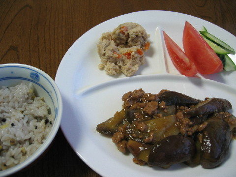 ◆マーボー茄子 五目おから トマト きゅうり 十穀米入りごはん
