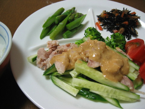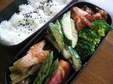 ◆照り焼きチキン(下にレタスをひいてます) ブロッコリー きゅうりのサラダ(昨日のバンバンジーサラダに使ったタレを絡めました) トマト アスパラ ふきの煮物(やっとなくなりました)
