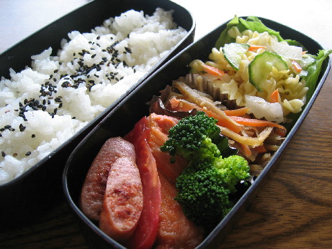 ◆マカロニサラダ レタス きんぴらごぼう 紅鮭 ブロッコリー トマト ウインナー 白米 黒ごま