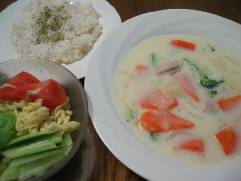 ◆シチュー サラダ(マカロニ・レタス・きゅうり・トマト) 麦入りごはん(乾燥パセリ)